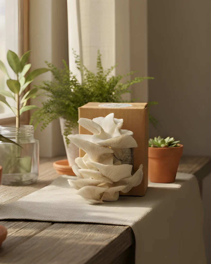 Designed for indoor growing without sunlight, this kit fits easily into small homes and thrives in low-light corners.